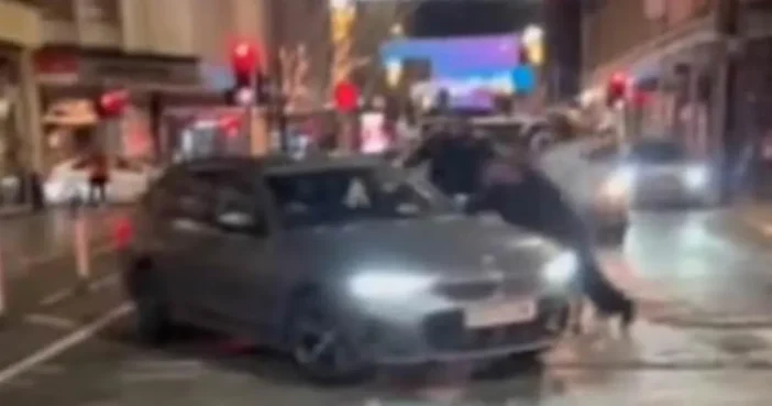 A helyszínen ezután dulakodás alakult ki az utcán tartózkodók között, miközben a jármű hirtelen a járda felé fordult, és nekiütközött egy útépítési munkálatokhoz használt akadálynak. Több férfi megpróbálta kinyitni az autó ajtaját, mielőtt a jármű újra nagy sebességgel elhajtott.